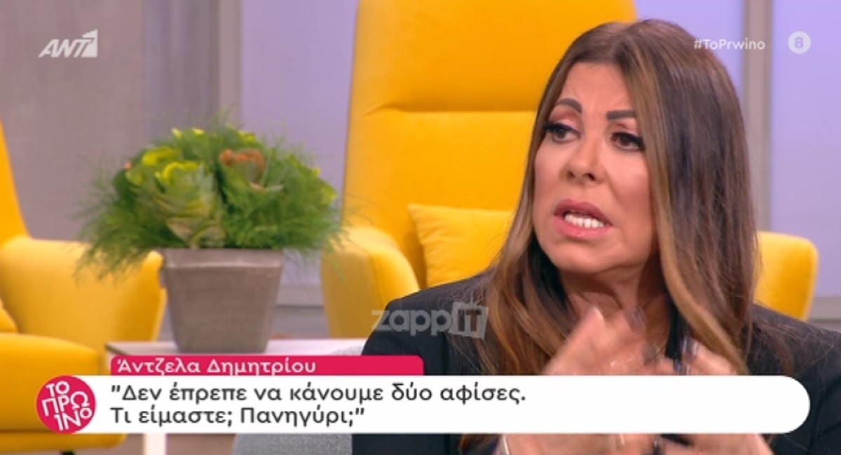 “Να κάνουμε δυο αφίσες; Τι είμαστε; Πανηγύρι; Ο Γιώργος δεν ήρθε σε κανένα ραντεβού, ήρθε μόνο στη φωτογράφιση. Σε κανένα άλλο ραντεβού δεν ήρθε”, κατέληξε η Άντζελα Δημητρίου»