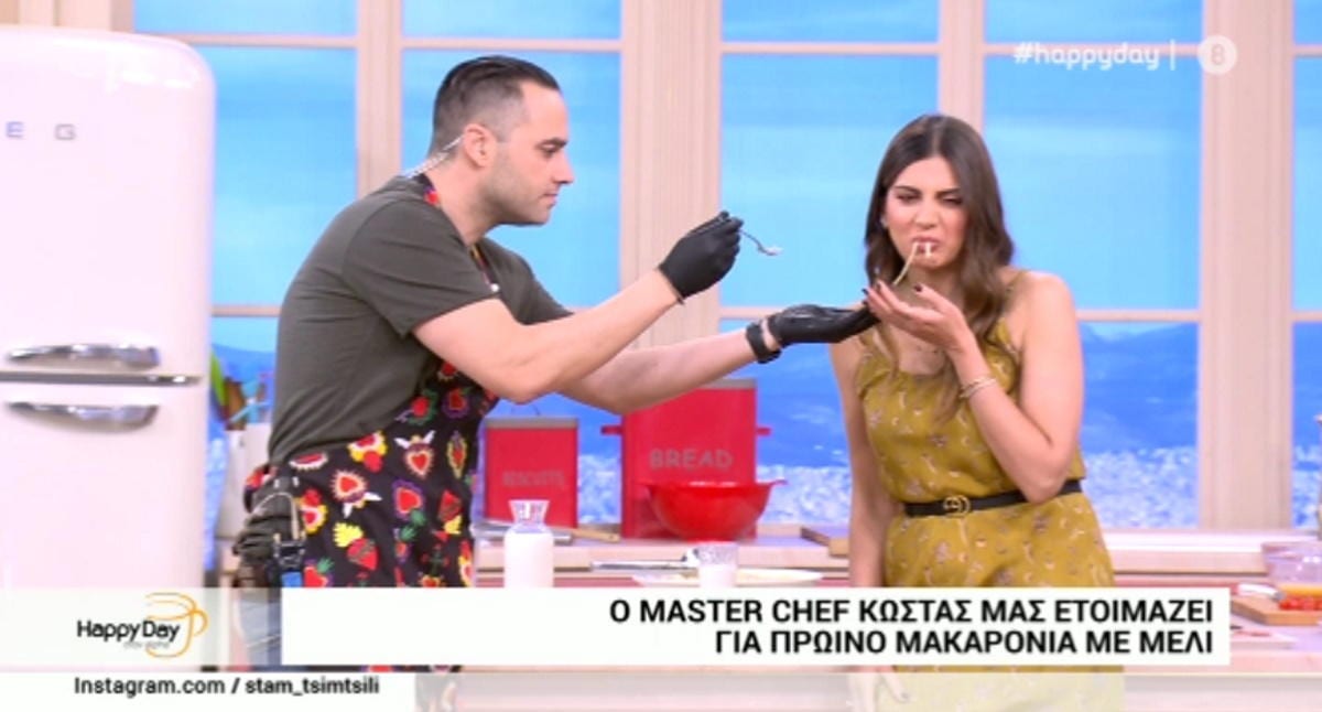 Μαγειρικός χαμός έγινε στο Happy Day το πρωί της Παρασκευής. Ο Κώστας Φραγκολιάς μπήκε στην κουζίνα, αλλά η κατάληξη ήταν διαφορετική από ό,τι περίμενε. Τα μακαρόνια με μέλι που ετοίμασε για όσους γυμνάζονται τακτικά και προσέχουν πολύ τη διατροφή τους, δεν ενθουσίασε τους παρευρισκόμενους.