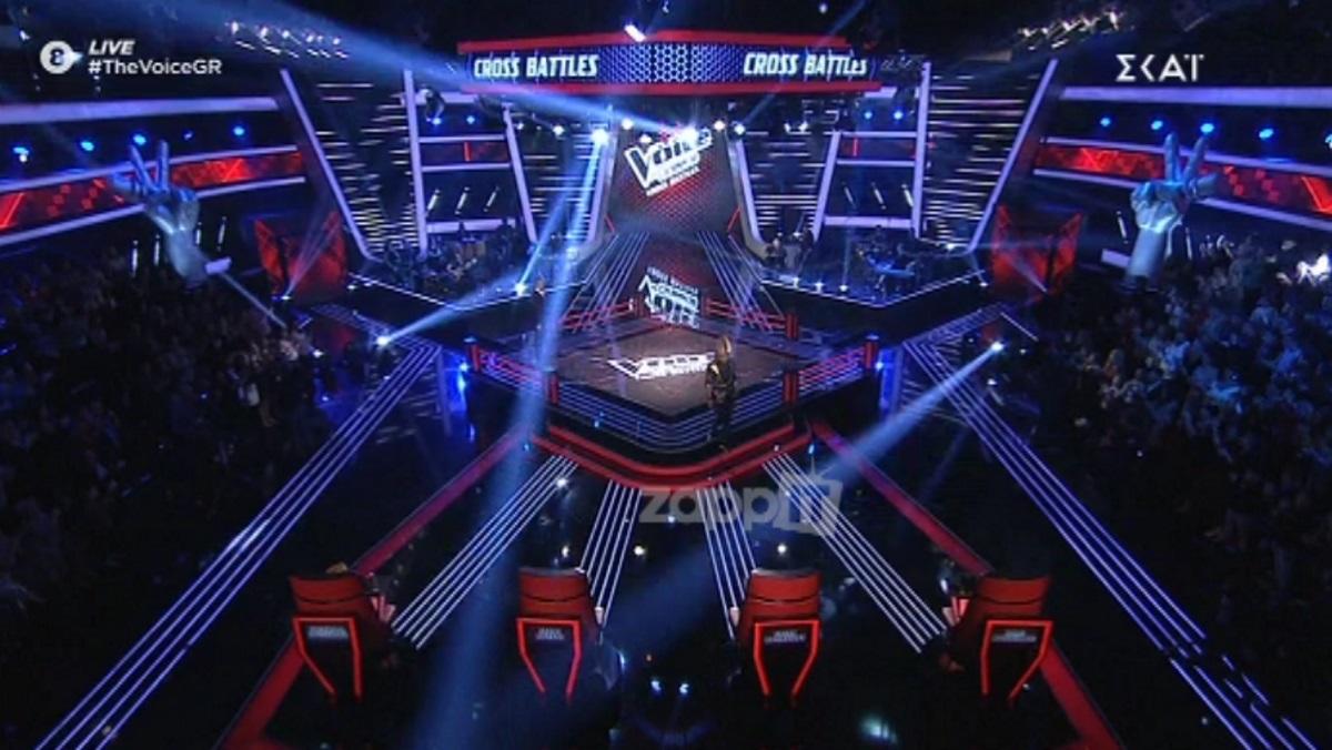 Πιστό στο τηλεοπτικό του ραντεβού, στις 9 το βράδυ της Παρασκευής, το The Voice ήρθε στους δέκτες μας μέσα από τη συχνότητα του ΣΚΑΪ. Το τάλεντ σόου περνάει πια στη φάση των Cross Battles και όλα τα επεισόδια θα είναι live μέχρι τον μεγάλο τελικό.
