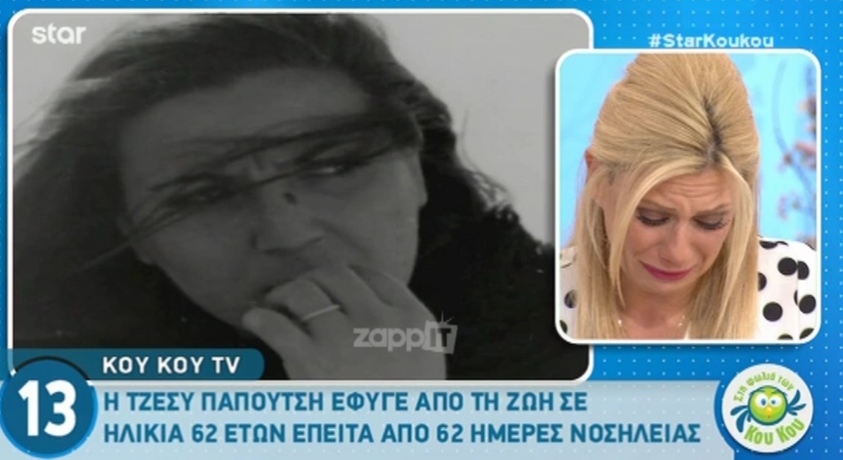 Είχε δίκιο η Έλενα Ακρίτα που είπε ότι άκουγες το γέλιο της και ήξερες ότι είναι εκεί και αυτό ήταν για όλους μας πολύ ωραίο γιατί είχε πάντα μια πολύ καλή ενέργεια. Η είδηση λοιπόν είναι ότι δεν θα ξανακούσουμε τουλάχιστον ζωντανά το γέλιο της, το έχουμε όμως στην καρδιά μας, στο μυαλό μας, το έχουμε όμως μέσα μας γενικά, το έχουμε στη μνήμη μας. Είμαστε πολύ χαρούμενοι που είχαμε την ευκαιρία να μοιραστούμε μαζί της στιγμές, είτε την ξέραμε, είτε όχι, είτε είχαμε δουλέψει μαζί της, είτε όχι. Είχε ένα πρόβλημα στην υγεία της, το ξέρετε, το έχετε ακούσει. Το πάλεψε, προσπάθησε, το κράτησε για εκείνη και τους πολύ δικούς της ανθρώπους, δεν ήθελε να το κοινοποιήσει. Κάπως τα πράγματα από ένα σημείο και μετά δεν πήγανε καλά, οπότε χθες μας έφυγε. Εμείς της ευχόμαστε με πολύ αγάπη καλό ταξίδι», είπε ο Κρατερός Κατσούλης πριν από το βίντεο με τηλεοπτικές στιγμές της Τζέσυς Παπουτσή που θα μείνουν ανεξίτηλες στη μνήμη μας.