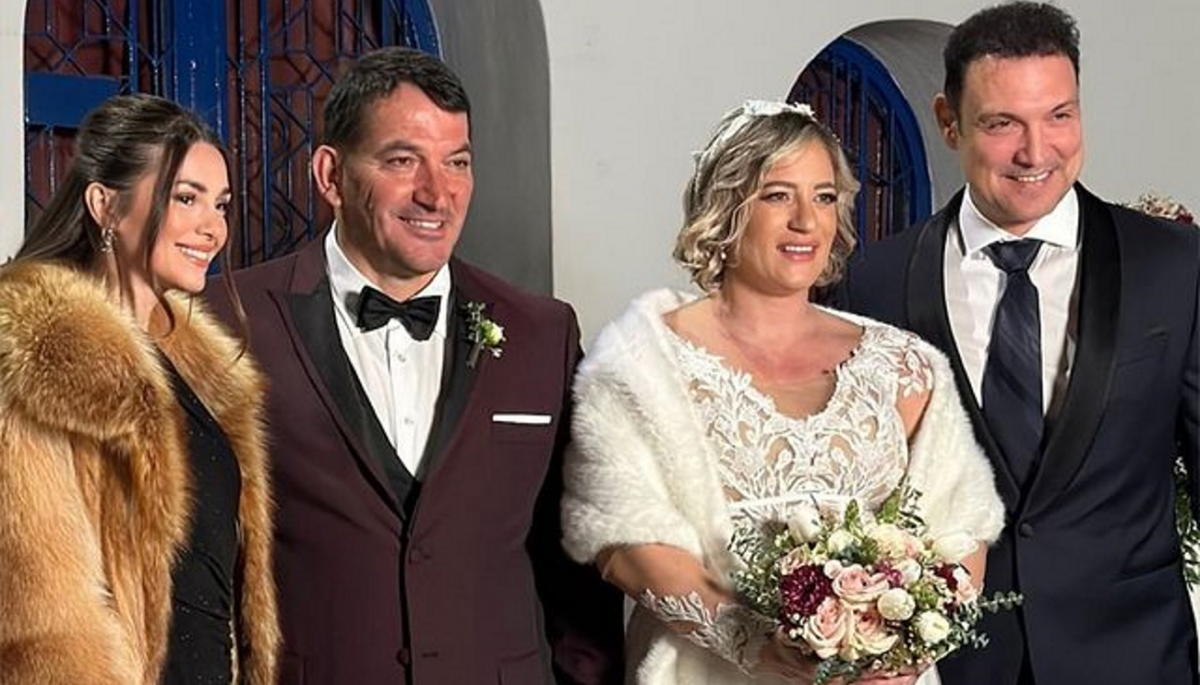 Με τα ιερά δεσμά του γάμου δέθηκαν ο Πύρρος Δήμας και η Αφροδίτη Σκαφίδα.