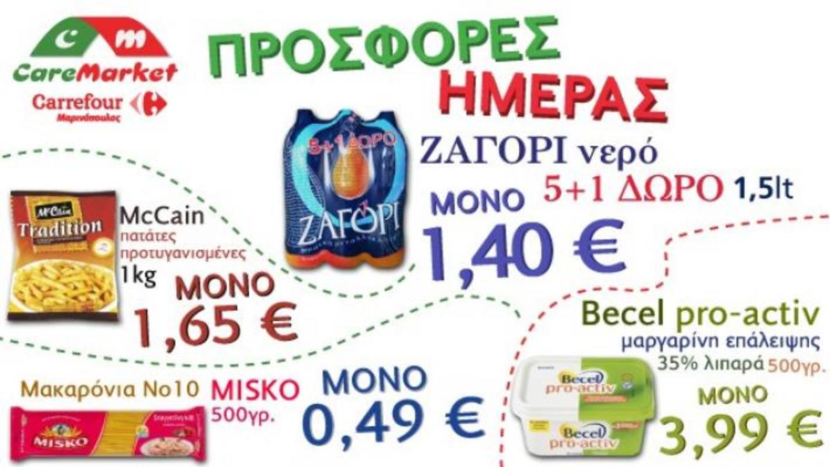 Η Caremarket.gr σε συνεργασία με την Carrefour – Μαρινόπουλος σας δίνουν 9000 προϊόντα για να κάνετε τα ψώνια σας. Κερδίστε χρήματα από τις χαμηλές τιμές και τις καθημερινές προσφορές μας.