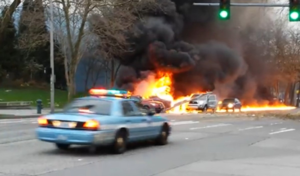 Όταν το ελικόπτερο του τηλεοπτικού σταθμού ΚΟΜΟ-4 συνετρίβη πάνω σε δύο αυτοκίνητα που κινούνταν στον κεντρικό δρόμο, αυτά τυλίχθηκαν αμέσως στις φλόγες.