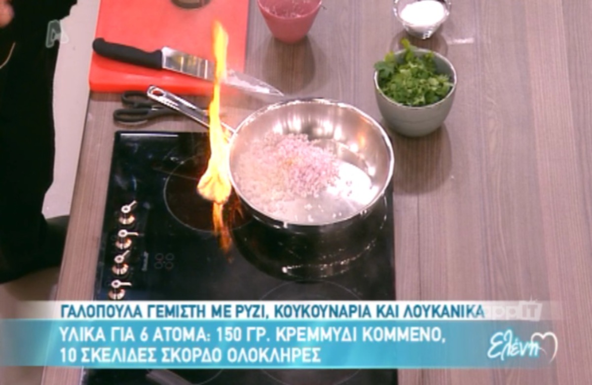 Τον σεφ Χριστόφορο Πέσκια είχε φέρει στην κουζίνα της η Ελένη για να μαγειρέψουν, αλλά η εκτέλεση της συνταγής πήρε επικίνδυνη τροπή! Όταν ο σεφ πήγε να προσθέσει ελαιόλαδο στο φαγητό, το λάδι χύθηκε έξω από το σκέυος με αποτέλεσμα να λαμπαδιάσει σε κλάσματα δευτερολέπτου η κουζίνα!